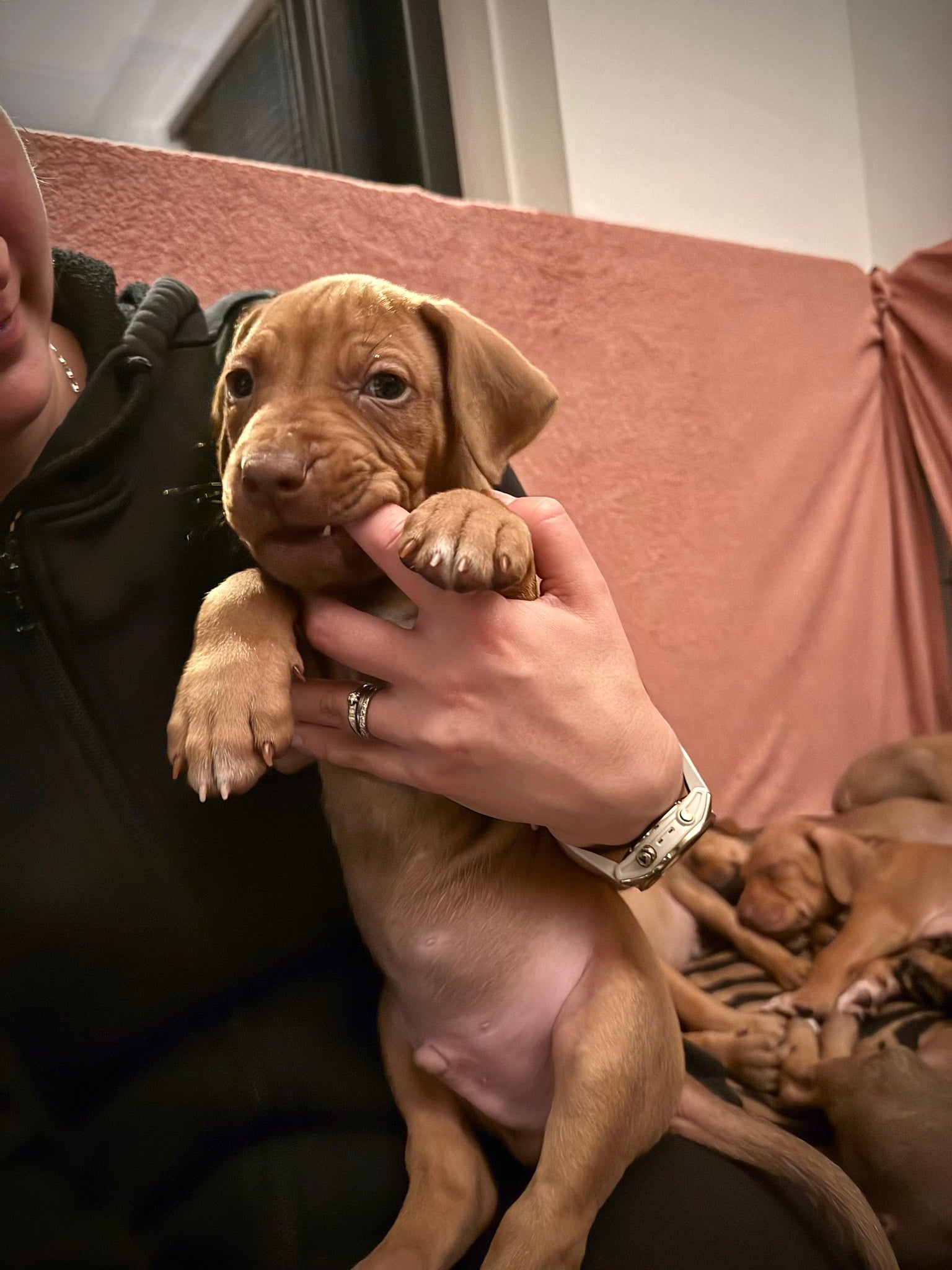 Cestou za Junou a jejími štěňátky jsme se zastavili také u našeho chlapečka z vrhu C – Mhambiho. Raven, Tris i Mhambi si společný čas moc užili a já měla obrovskou radost, že jsem ho zase mohla vidět.